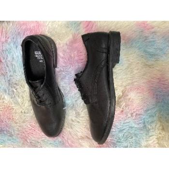 Black Soft Leather Lace-up Casual Shoes Comfortable Fitting Daily Style