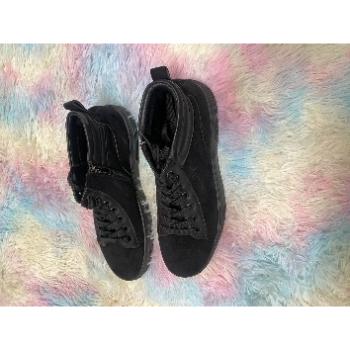 Black Suede High-top Casual Shoes Lace-up Design Daily Styling Style