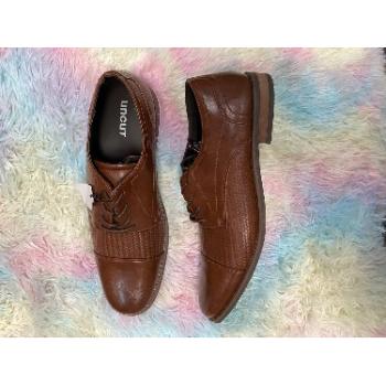 Brown Woven Detail Lace-up Leather Shoes (URCUT Logo) Retro Texture Styling Style